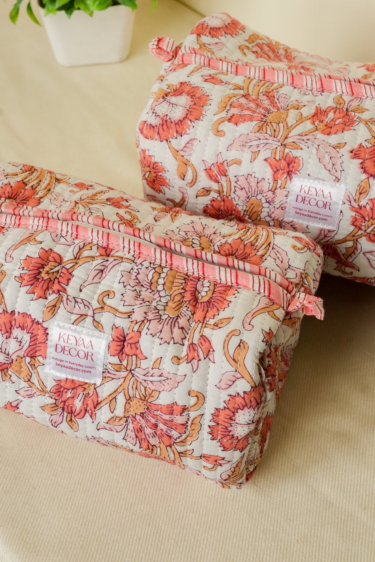 • 100% Cotton Handmade Quilted Pouches: Crafted with care and attention to detail, these pouches offer a unique and stylish look.